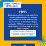 A Agência Reguladora de Serviços Públicos do Estado de Sergipe (Agrese) intensifica seu papel na regulação dos serviços públicos com a abertura da Consulta Pública 001/2024. Este processo visa coletar contribuições para estabelecer critérios de restituição aos usuários dos créditos tributários obtidos pela concessionária de distribuição de gás canalizado Sergipe Gás S/A (Sergas), em decorrência da exclusão da incidência do Imposto sobre Circulação de Mercadorias e Serviços – ICMS da base de cálculo do Programa de Integração Social – PIS, do Programa de Formação do Patrimônio do Servidor Público – Pasep e da Contribuição para o Financiamento da Seguridade Social – Cofins.